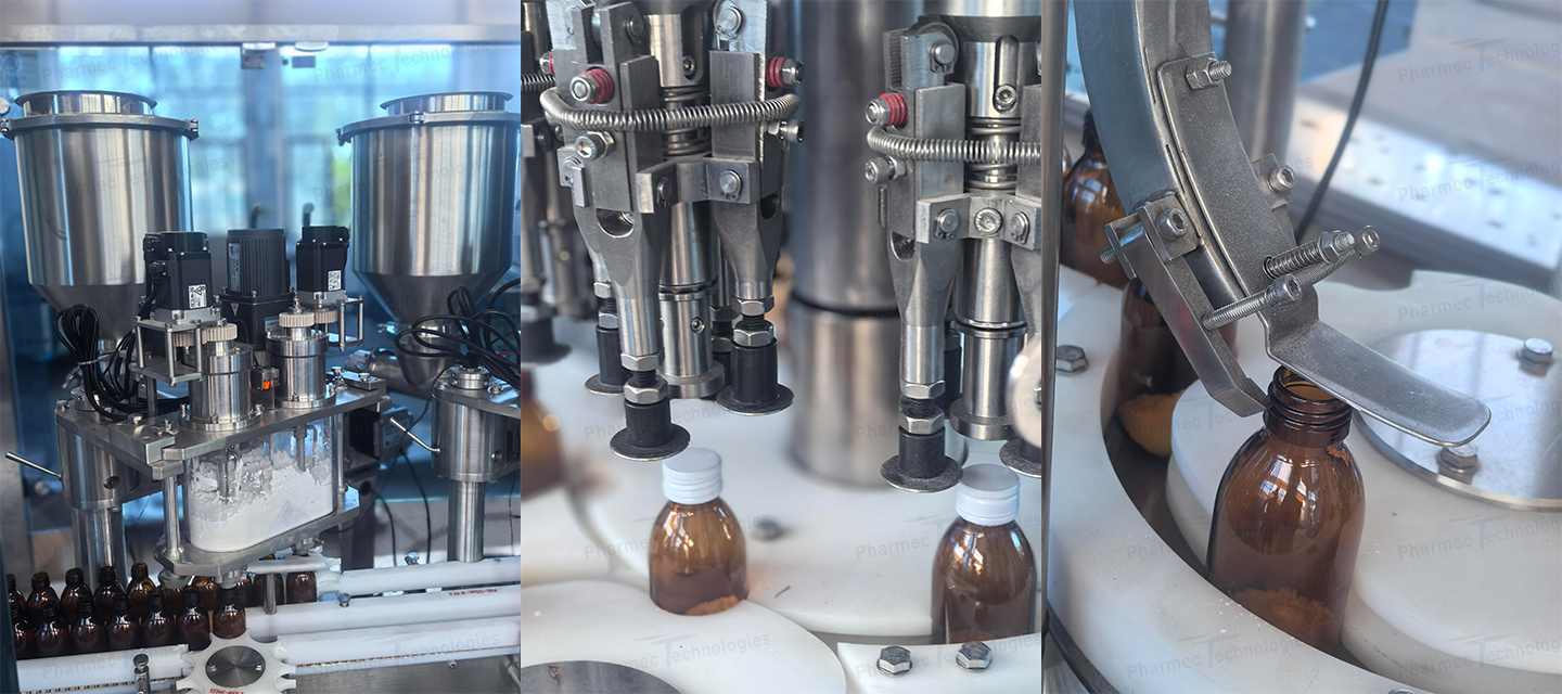 The syrup powder filling line is designed for precise, efficient, and hygienic filling of pharmaceutical syrups and powdered formulations. With advanced automation, reliable dosing accuracy, and compliance with international GMP standards, the line ensures both high production efficiency and consistent product quality. It is widely applied in pharmaceutical manufacturing for oral liquid and dry powder preparations, helping clients improve productivity and reduce operational risks.